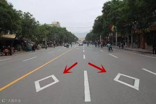 单行路:长方形里有箭头,而且空间比较窄的,就是说只能往一个方向走的单行线,是禁止掉头的。