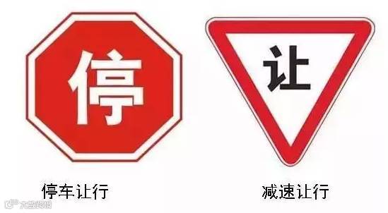 减速让行:“让”表示减速让行。减速让行一般路口视线较好,可以看到支路上的行人车辆,须降低车速,如支路上有车辆行人穿越,则须让行。没有行人车辆则减速通过。