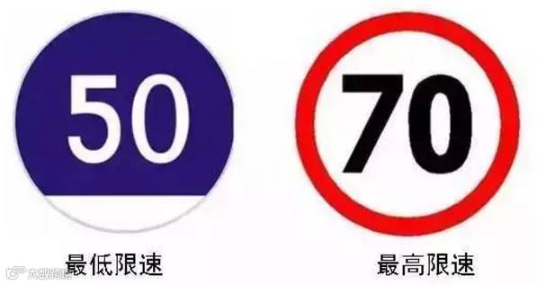 最低限速:圆圈内涂有颜色,但下方还有一截白底,表示最低限速标志,而最高限速一般都是白底黑字。