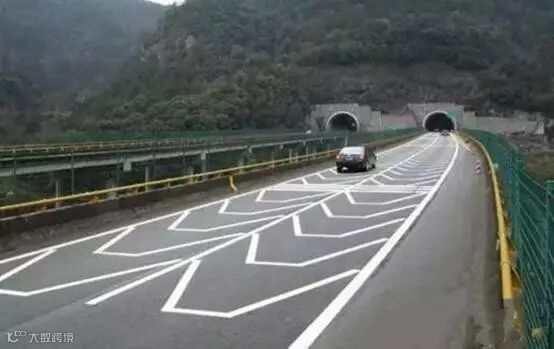 “错视觉标线”是一种特种的减速标线,一般开始于隧道外200米,一直延伸到隧道内100米,是提醒你减速慢行的标志。因为隧道口内外,光线差别很大,需要减速慢行适应。