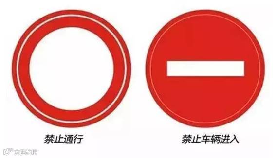 禁止驶入:圆圈里面有一道杠就是禁止驶入,一般多用于单行道,准出不准入。
