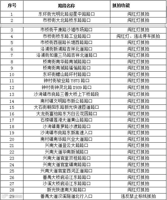 以下为番禺区电子抓拍地点
