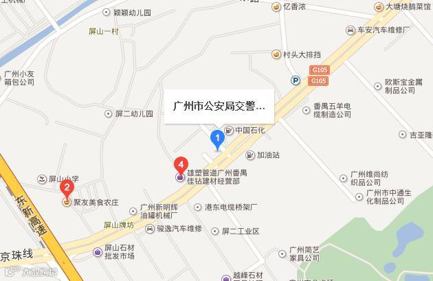 番禺交警二中队:石壁街105国道屏山村加油站旁