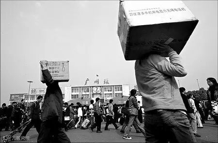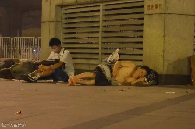 甚至刚来到广州的打工妹,就直接在广场休息。每一个打工者,来到广州都历经千辛。