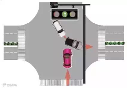 三、绿灯情况下的直行车辆,没有让上一个红绿灯期间内遗留在路口中间的对面路口开过来的左转弯车辆先走。