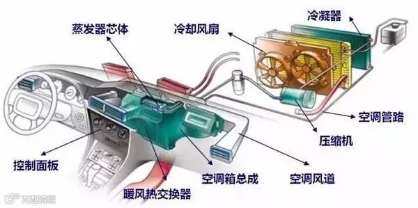 专家告诉我们,这个认知是片面的。汽车空调是由压缩机、冷凝器、散热器、散热风扇、膨胀阀、储液干燥器、蒸发器等近20个部件组成的精密系统,这一系统上任何一个部件出现问题,都会减弱空调效果,甚至导致其罢工示威。