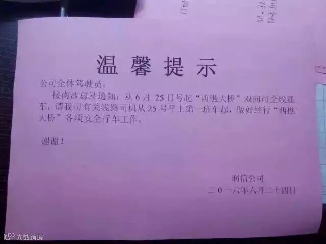 明天早上上班可以行西樵大桥了!