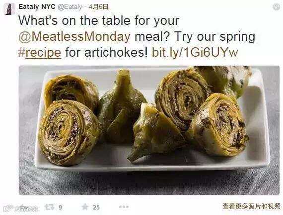 无肉星期一:在这天倡导大家吃素食,同时顺便宣传Eataly精致的素食菜单。