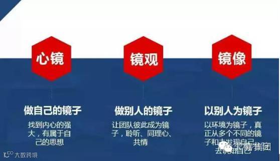 “照镜子”:修炼一个管理者的“胸怀”。管理者是需要孤独的,因为要面对自我内心的强大;管理者需要是融入的,因为需要通过“上通下达”来推荐企业与组织的发展。以自己为镜,做别人的镜子,以别人为镜子,将自我完善。