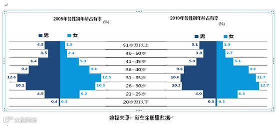 从2005年至2010年的研究数据来看,在21至35岁的购车人群中,女性消费者比例略高于男性,女性已成为新的消费主力。