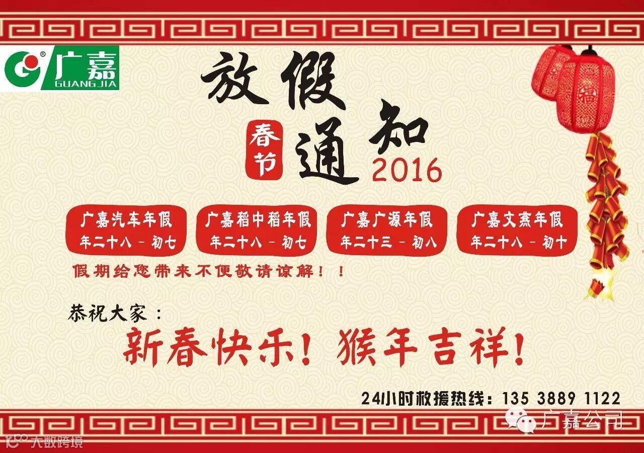 春节将至,首先祝诸位新春快乐,生意兴隆,猴年心想事成!再次感谢诸位对我司产品、服务的一贯支持与信任!一路有您,我们深感荣幸!