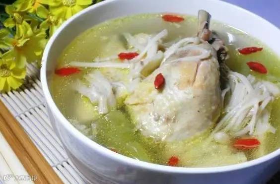 功效:杏仁能润肺化痰、止咳平喘,川贝能润肺化痰、清热止咳,鹧鸪补中消痰、开胃和中。此汤为清润肺燥之食疗佳品,可用于慢性支气管炎、小儿百日咳等症。