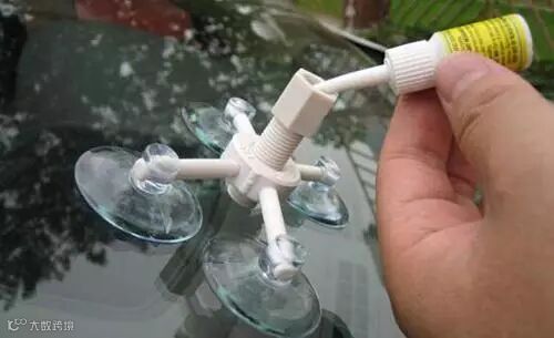 第三步:然后旋上压力筒,对准洞,架上支架,固定好位置并对准玻璃的破损点,利用该工具的抽真空功能将破损点内部残余的空气抽出,之后进行施压。