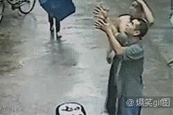 小朋友从楼上摔下来,两位大哥徒手接住。