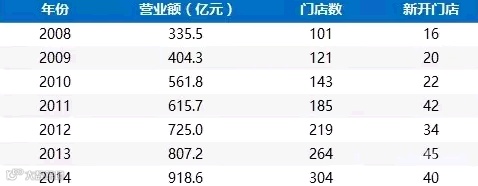 而据亿欧网研究大润发的年报数据发现,大润发之前未曾关店,也许未来很长一段时间也不会关。大润发营运租赁的租金从2010年的11.69亿元提升到2014年的20.45亿元;在总营业额中的占比从2.1%提升到2.4%。2013年上半年,大润发租赁租金收入是10.95亿元,而场地经营租约支出是10.09亿元,租赁收入已经高于支出。2014年大润发营业额的年复合增长率是15.3%,而租金的增长率是21.6%,大润发租金收入与开支的差距日益拉开,收入已经超出支出1.77亿元,这意味着大润发仅靠超市外的场地收入,就已经够缴纳全部场租,超市内的场租费用为零,并且超市仅通过转租就能获得上亿元的收益。由此可以预测,只要大润发坚持谨慎选址的原则,未来一段时间也不用“无奈”关店。