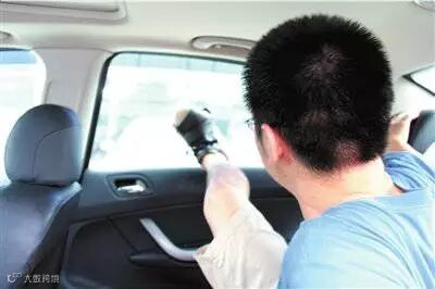 注意:头枕的正确使用方法不是砸玻璃,而是“撬”玻璃,把头枕钢管插进车窗于车门之间的缝隙,然后使劲一下“撬”!