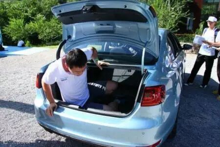 这个方法需要有两个必要条件:后排座椅放倒+后备厢内部解锁机构。