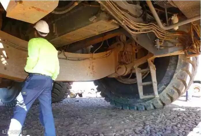 卡特797B卡车底部,人可以直接走进去