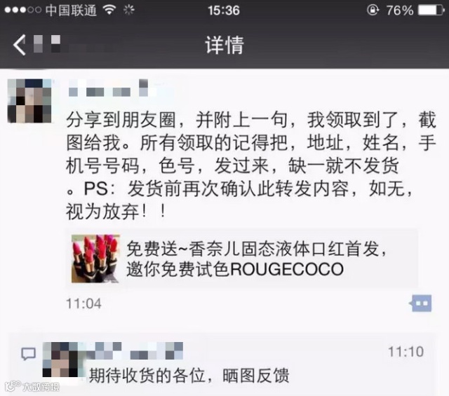 近段时间,一则免费赠送【香奈儿口红】【明星同款太阳镜】【品牌手表】的信息在微信朋友圈里疯传,只需付运费即可免费领取。这样的天下掉馅饼的“好事”是真的吗?