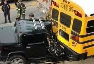 悍马追尾校车,大家可以看看!