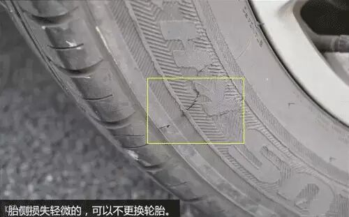 轮胎的胎面或胎侧损坏严重的情况,表示轮胎已经不能继续使用了,必须更换掉,以确保行驶的安全: