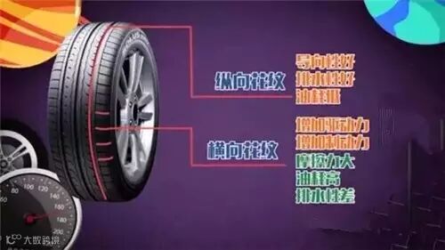 轮胎中横向花纹的作用主要是增大驱动力以及制动力,但是相应的,摩擦力大、油耗高、排水性差。而纵向花纹导向性好、排水好、油耗低。