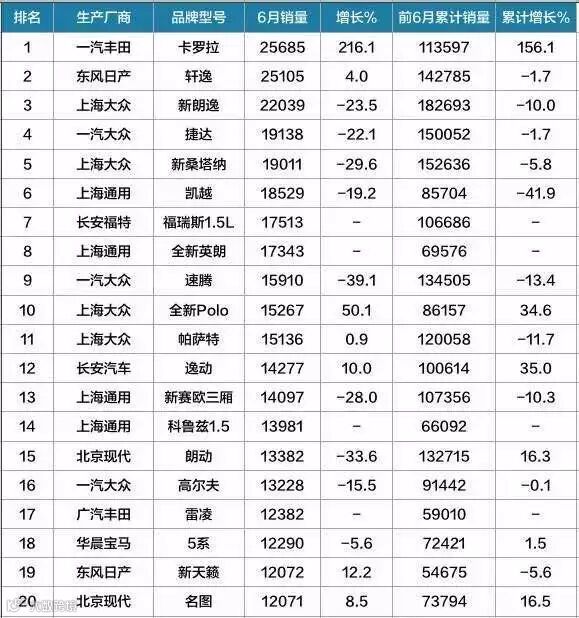 @品言姑娘:砖叔你好,近期我一直在看车,本来就挑得很眼花缭乱。这几天看了一下刚出来的六月份的全国各车型汽车销量排行榜后,我在想,按照销量来选车靠不靠谱?多人买的车就一定是好车吗?