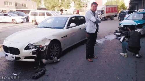 近日,沈阳发生一起交通事故,一辆左转弯的出租车撞到了直行的玛莎拉蒂,引来众多围观者,自认全责的女出租车司机单手捂着脸,在一旁默默落泪。玛莎拉蒂驾驶员称,出租车的第三者责任险30万元的保额不够赔偿其修车费用。