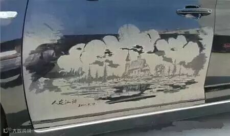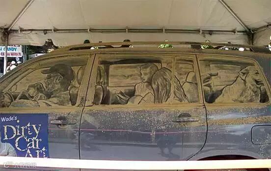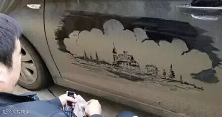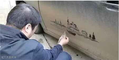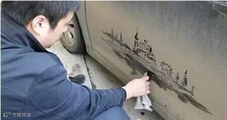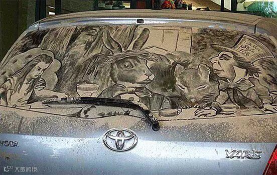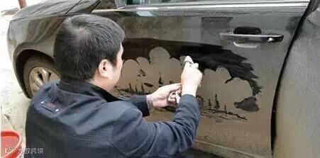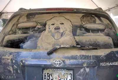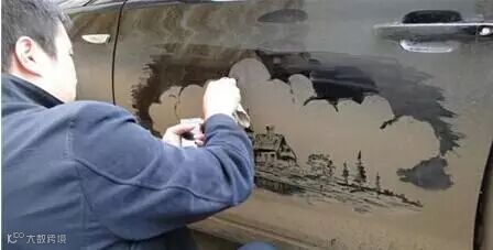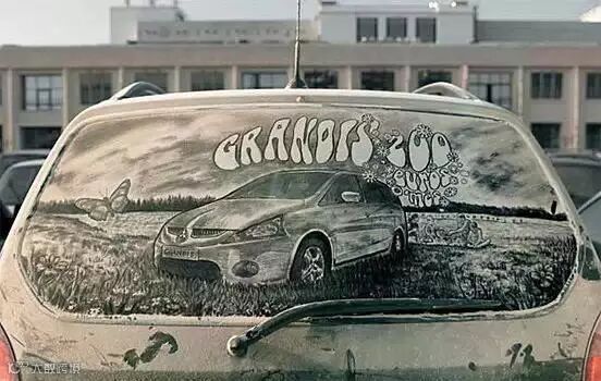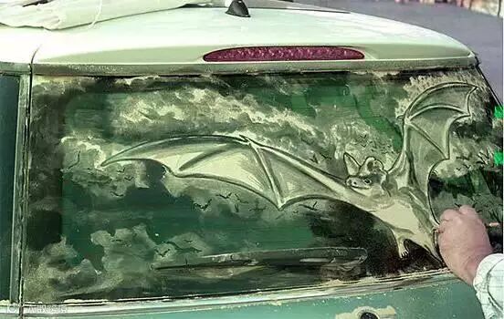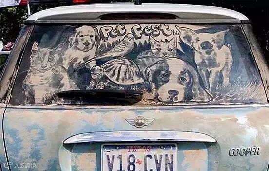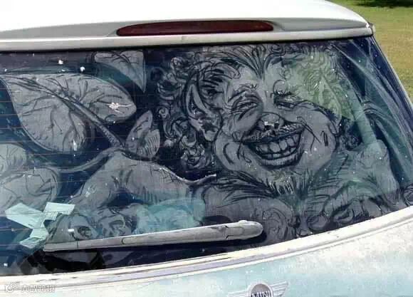 另类的尘土艺术——脏车窗上的绘画