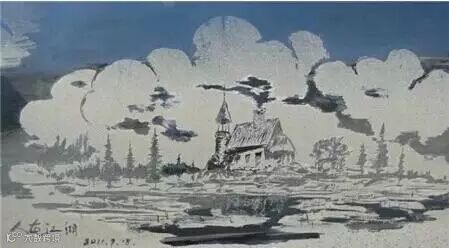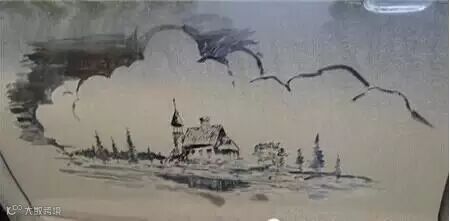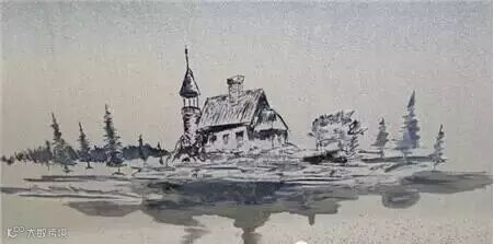 不知什么时候房顶上的避雷针被挂上了小旗子,烟囱里也冒出了几根头发丝状的炊烟,一旁的衬托框也被好多手指头划上了痕迹,经过好多次的修改,最终就改成了这个样子。
