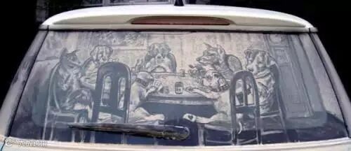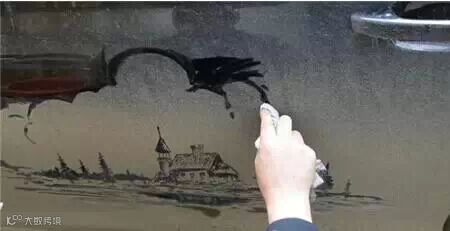 在车窗上作画,没有颜料画笔,用手指涂涂抹抹就能创作出一副生动传神的画。这些街头艺术家们或临摹世界名画,或创意涂鸦,经过一番绘制,前一秒还是一辆灰头土脸普通的不能再普通的车,不一会就成了一件个性十足、精美绝伦的街头艺术品,无论到哪都会成为众人瞩目的焦点。