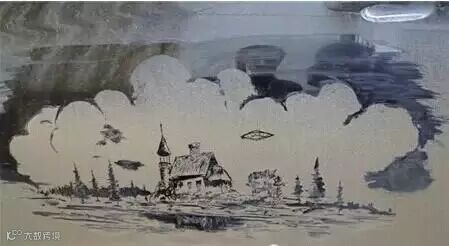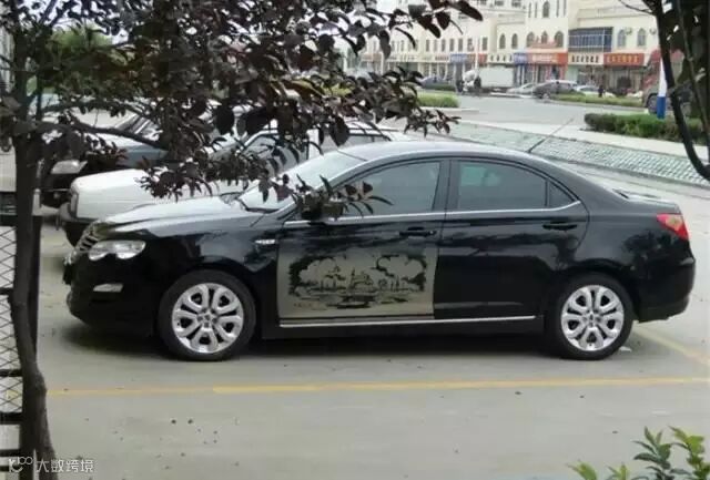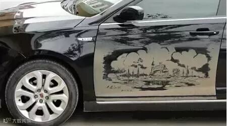 开始创作,主景区轮廓适当沾点水,别把车漆磨坏了