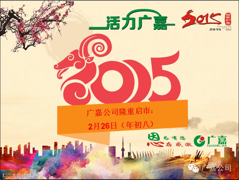 尊敬的客户!广嘉公司于今天(年初八)正式启市。