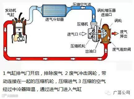 涡轮增压全称为废气涡轮增压器,其原理跟字面一样,就是利用汽车发动机废气来驱动主动涡轮叶片,带动同轴的叶轮来对空气进行压缩后注入发动机气缸内进行燃烧。由于同体积内含有的空气更多,因此气缸内的燃烧会更加充分,从而产生更多的能量。