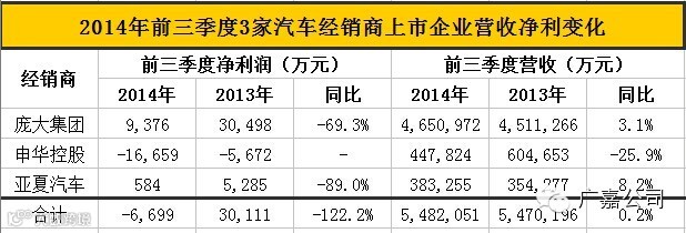 国内上市的三家汽车经销商企业——庞大集团、申华控股和亚夏汽车,今年前三季度业绩均出现大幅下滑。尤其是申华控股,其去年同期已是亏损状态,今年前三季度亏损进一步扩大——由0.57亿元扩大至1.67亿元。