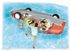 一:落水瞬间,司机打开四扇车门的电门锁和车窗。