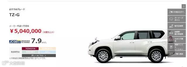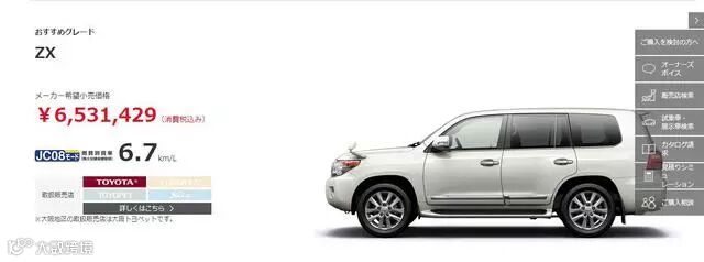 兰德酷路泽,目前在中国卖的非常火的全尺寸SUV,一直以豪华和越野性能强悍而著称的陆地巡洋舰在国内售价在76万-115万,即使在保税区能买到的最低配也需要将近50万。但是看下在日本的价格,换算成人民币33万左右。这个没有价格区间,配置至少是中间配置。
