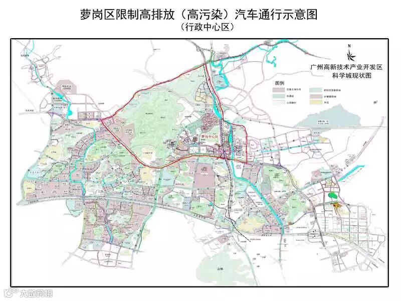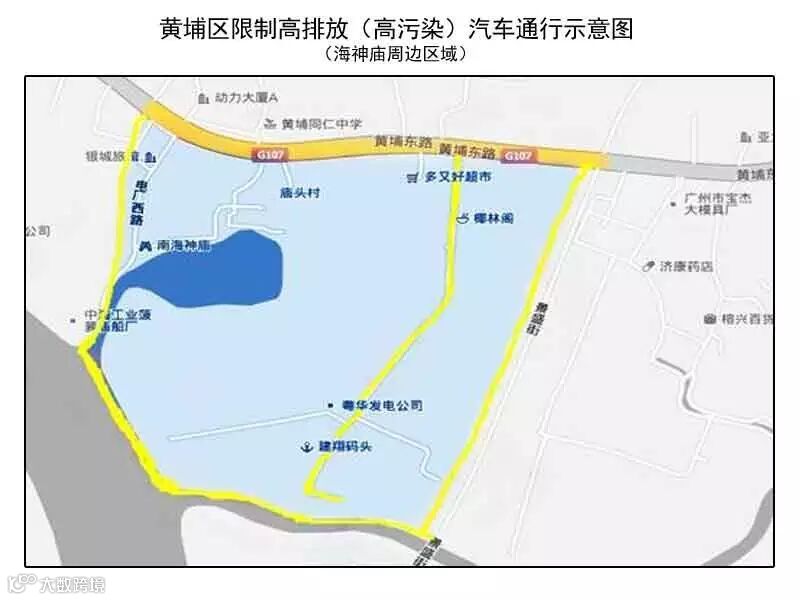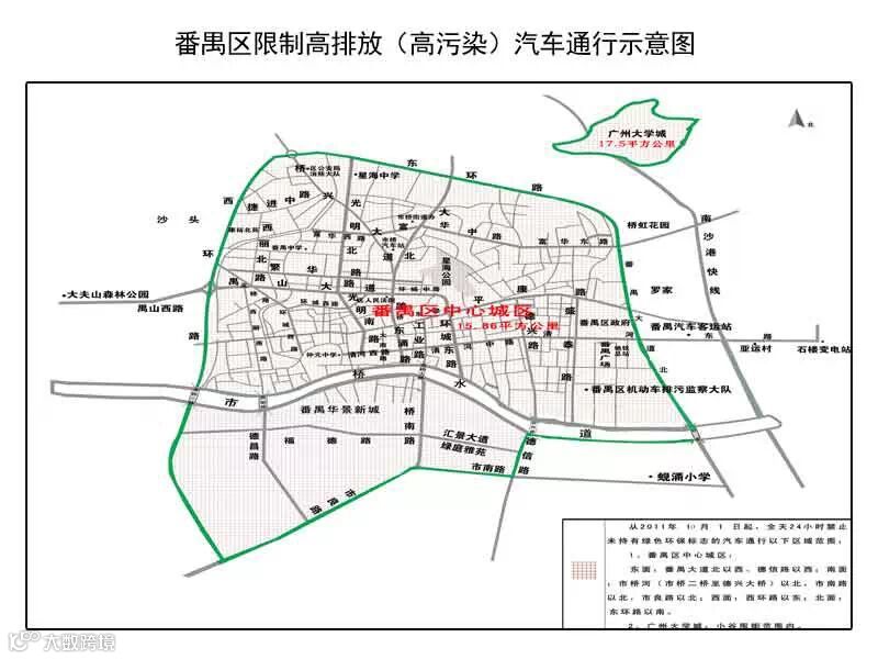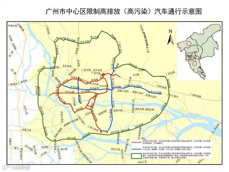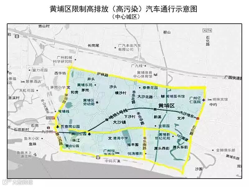 以下是广州市辖区黄标车限行区域图,请各位黄标车车主留意。