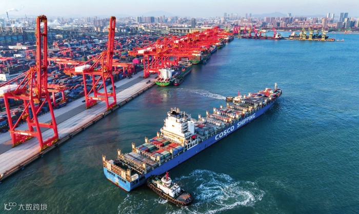 在山东港口日照港集装箱码头,满载集装箱的船舶驶离港口(2025 年 12 月 5 日摄) 新华社发(李大伟摄)