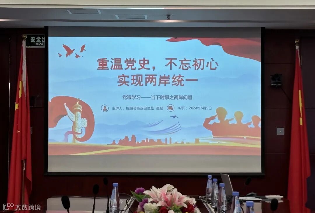 事业部总监翟斌对两岸关系的历史与现状、祖国统一的战略意义等方面进行了解读阐述。翟斌表示,祖国统一是中华民族的根本利益所在,也是实现民族复兴的必由之路。两岸同胞的天然情感和民族认同无法阻挡,国家强大、民族复兴、两岸统一的历史大势无法阻挡。我们要深刻认识祖国必须统一也必然统一的历史大势,铸牢中华民族共同体意识,共创中华民族绵长福祉,实现中华民族伟大复兴。