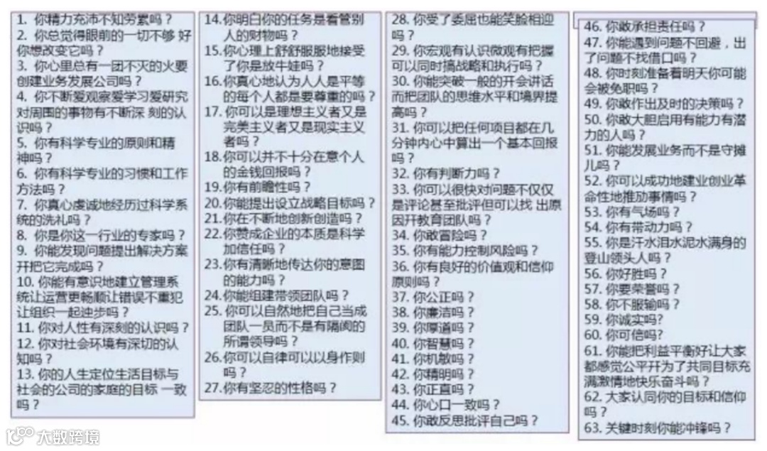 “你精力充沛不知劳累吗?你有科学专业的原则和精神吗?你有科学方法吗?你真心虔诚地经历过科学系统的洗礼吗?你是最好的专家吗?……最终归结于‘你行吗?’”