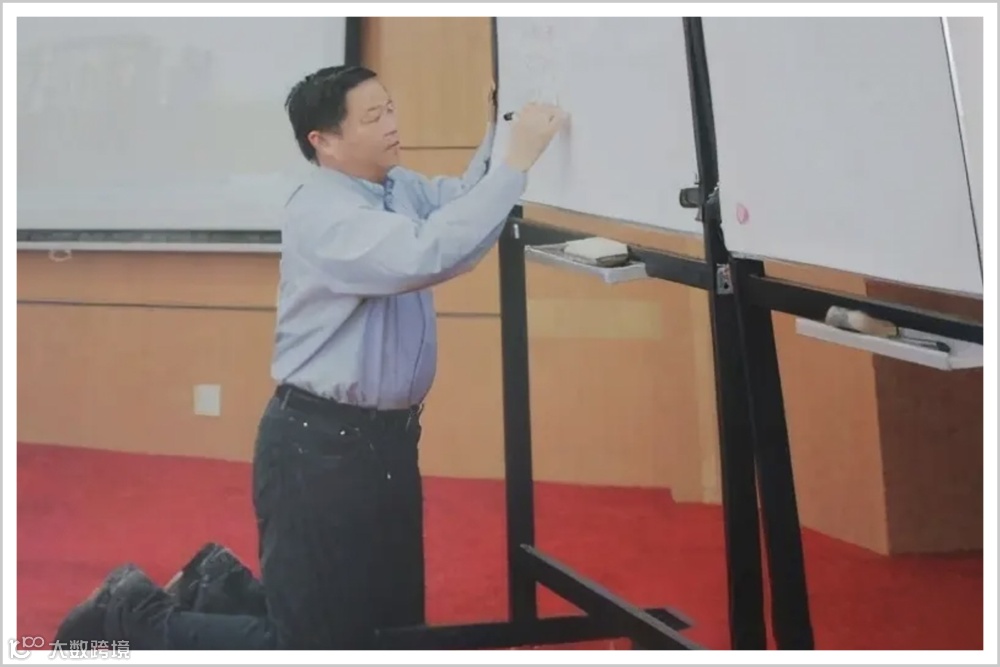 当白板快被写满要深度弯腰才能往下写时,他竟直接跪在地上接着往下写讲义。