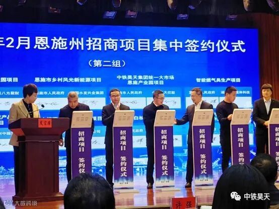 在签约仪式上,湖北道石能源有限公司董事长段利华代表中铁昊天控股有限公司与恩施市政府签署了中铁昊天集团统一大市场恩施产业园项目。项目总投资40亿元人民币,投资方向主要是建设恩施州统一大市场产业园、恩施州硒产品交易中心、道地中药材交易中心、农副产品交易中心、大宗商品(煤炭、石油、钢材、建材、玉米、水果)交易中心、农副产品加工区、综合保税加工区、道地药材加工区、仓储基地建设、产业孵化器及新材料研究院。通过这次的签约,双方将建立密切、长久及融洽的战略合作伙伴关系,充分发挥各自的资源优势及特色,在建设全国统一大市场项目、大宗商品贸易、农产品加工等领域深度合作。