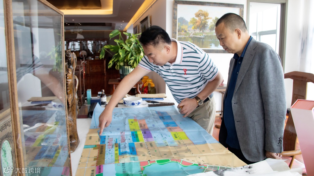(5月26日,山东海诺港务有限公司丁总为中铁昊天集团董事长介绍东营港二突堤及后方园区项目的具体情况)