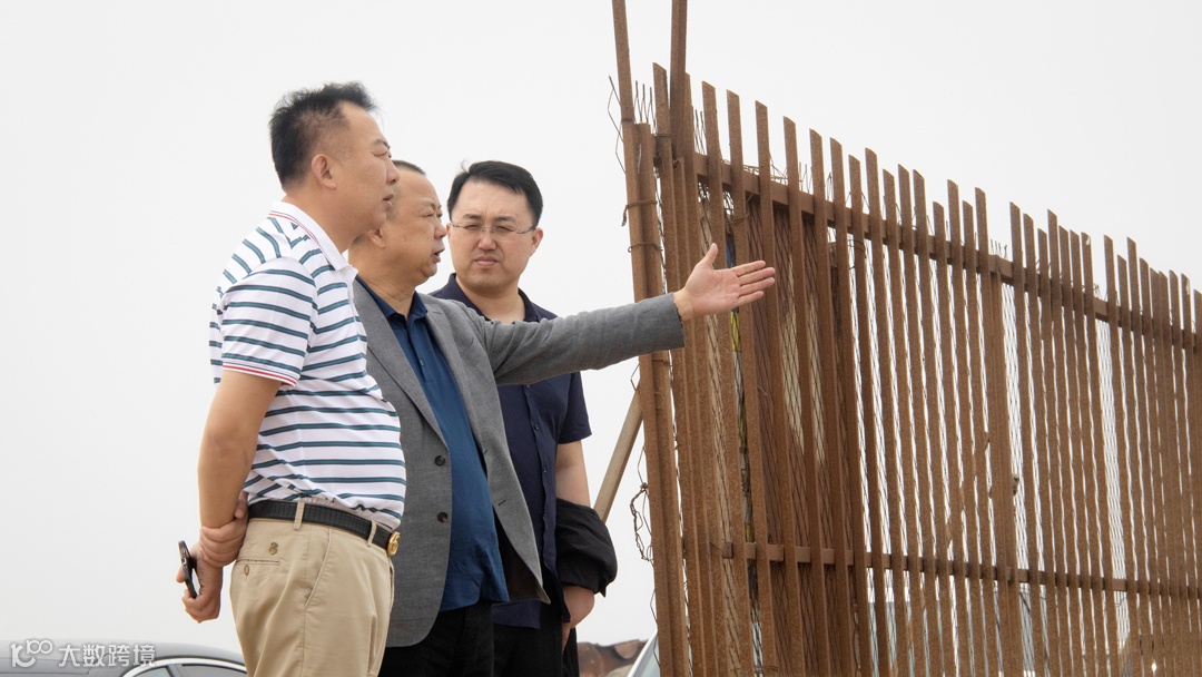 (5月26日,中铁昊天集团董事长在山东海诺港务有限公司丁总和有关项目专家陪同下在东营港二突堤项目开展调研工作)