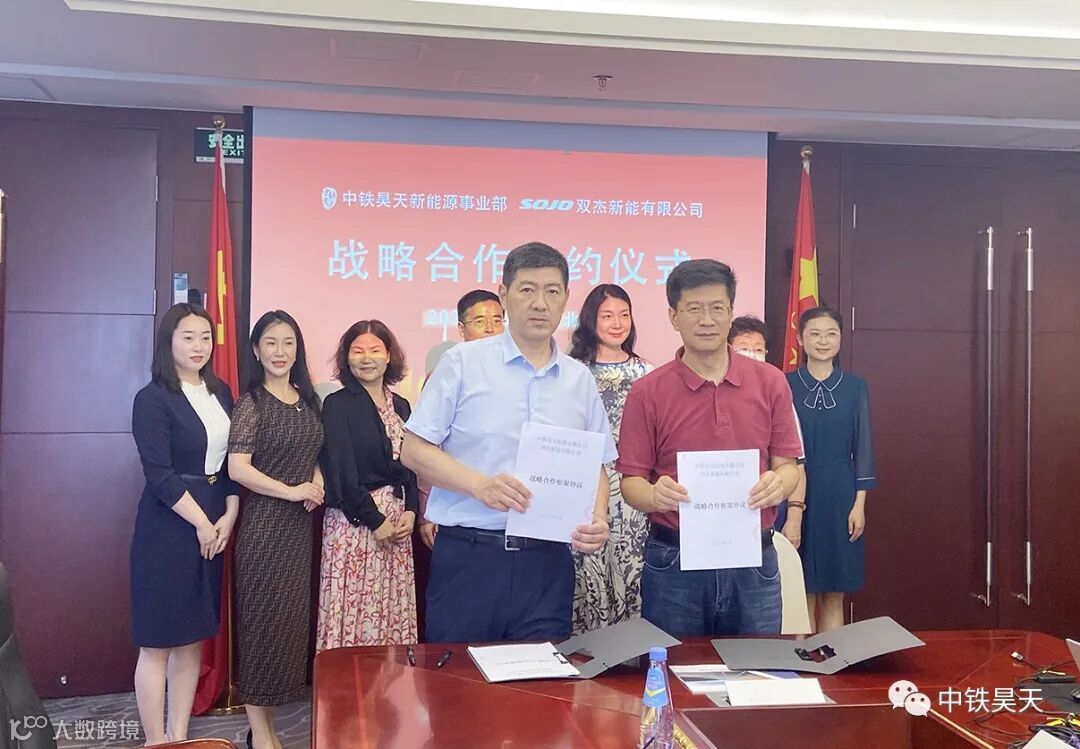 会议双方经友好协商,本着“优势互补、共同发展”的原则,就综合能源、新能源及储能等方面的合作关系达成共识,双方自愿结成战略合作伙伴。中铁昊天法人代表刘大磊总与双杰新能有限公司签署了《战略合作协议》并合影留念。根据协议,合作双方将在在新能源产业发展方面共同开展更深层次、更大范围合作,凝聚共识、汇聚发展合力,全面推进双方事业迈向新征程。