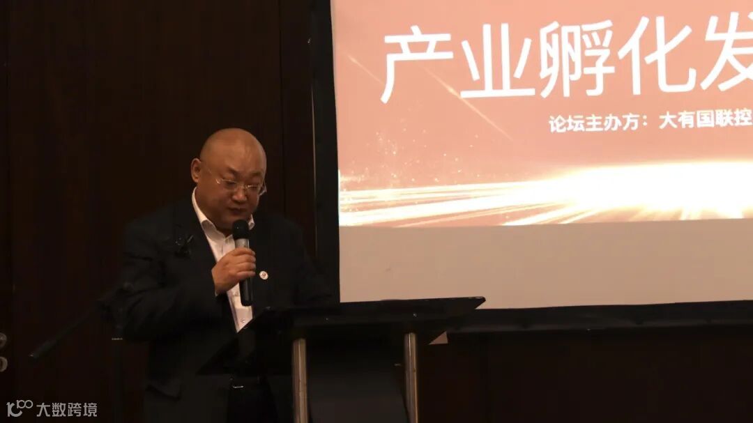 图为大有国联党委书记、董事长在论坛上发言