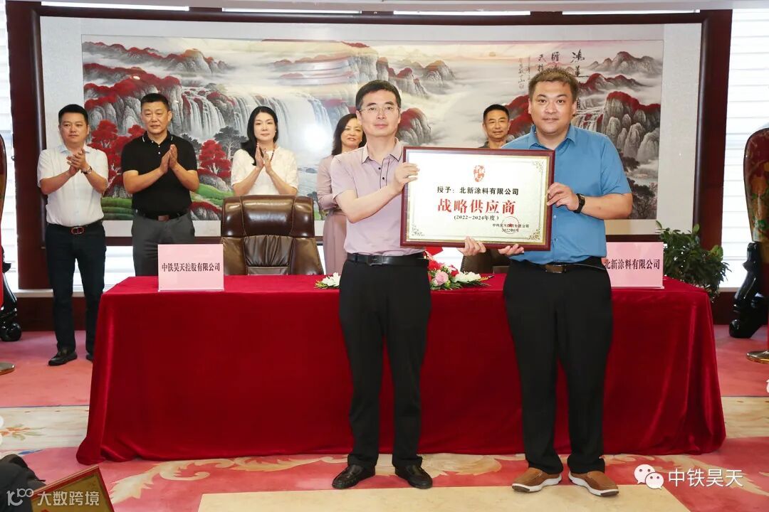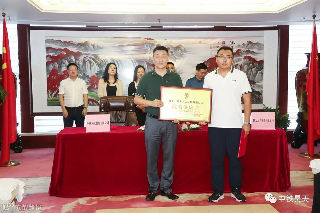 为实现资源协同,优势互补和共赢发展,中铁昊天与38家战略合作供应商在北京举行战略合作研讨暨战略合作签约仪式。活动为期三天,研讨会氛围热烈友好,坦诚开放。研讨会后进行了战略合作签约仪式和授牌仪式。