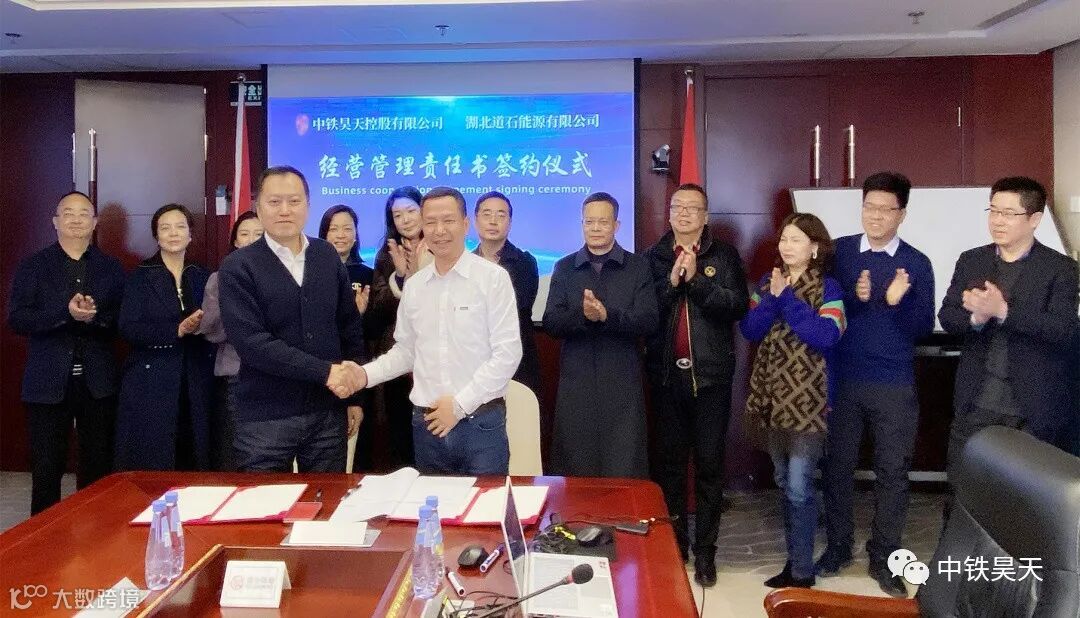 12月27日,湖北道石能源有限公司经营管理责任书签订仪式在中铁昊天总部会议室举行。中铁昊天董事长、副总裁、华中事业部总裁、城市发展事业部领导、中霆控股集团领导、国特有限公司领导、湖北道石能源有限公司领导参加了会议。