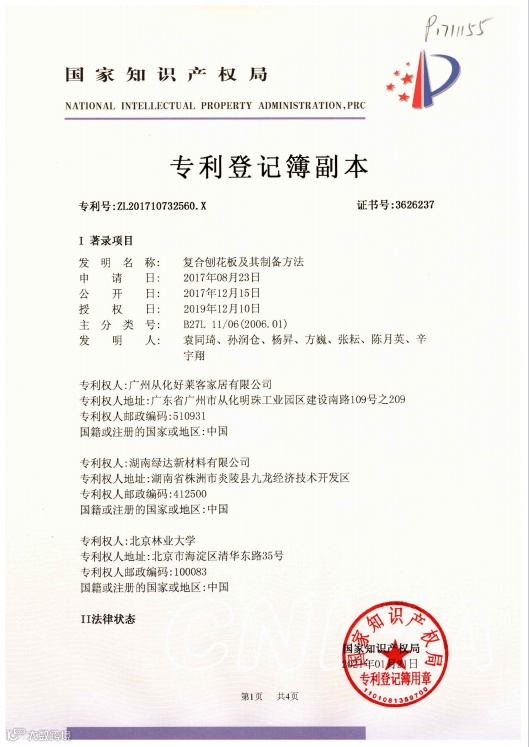 原态净醛竹板专利